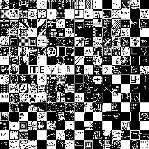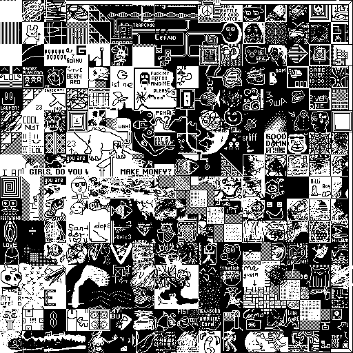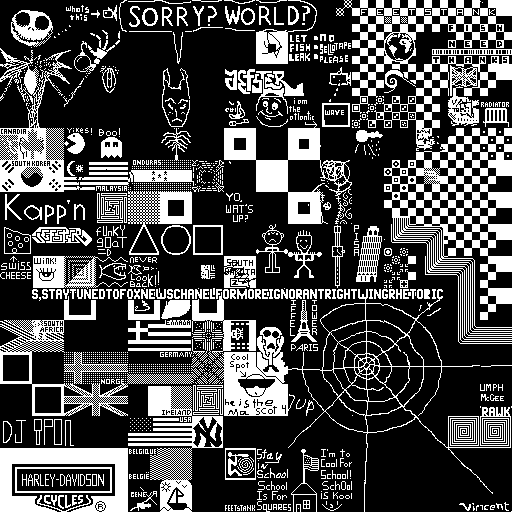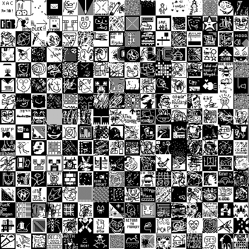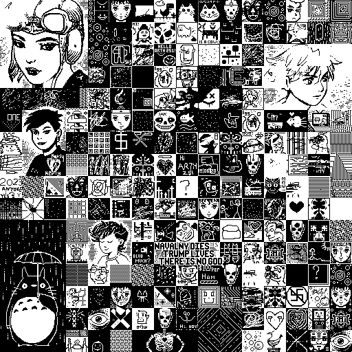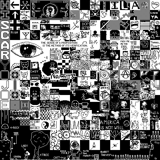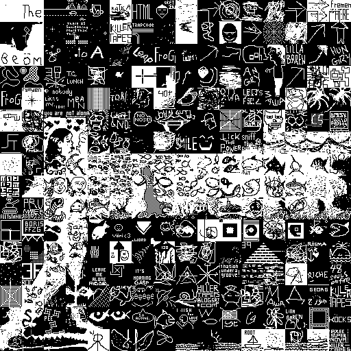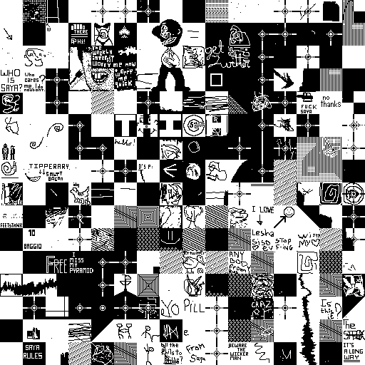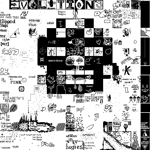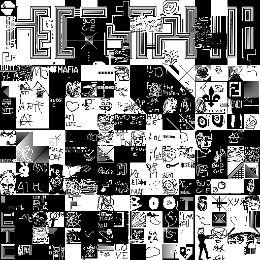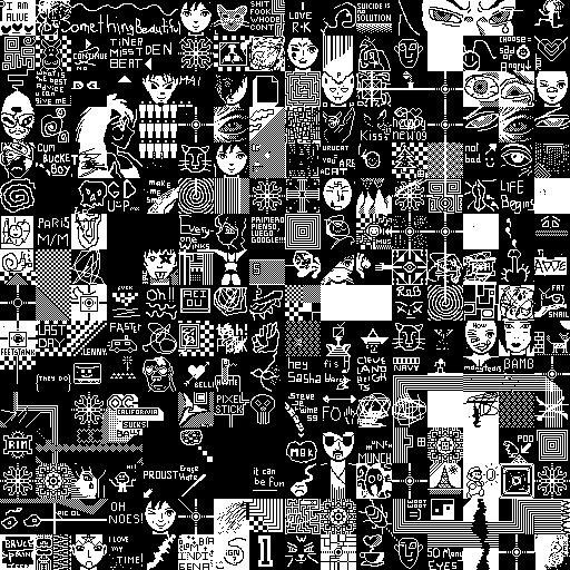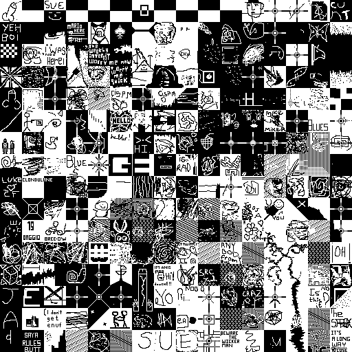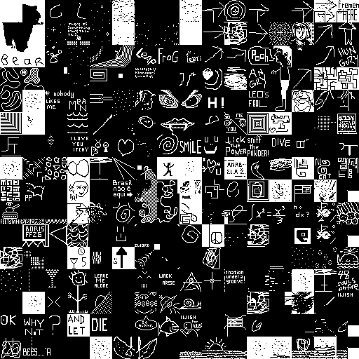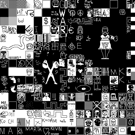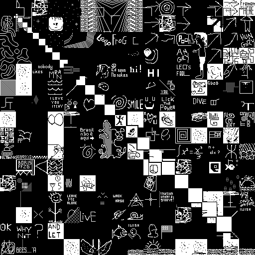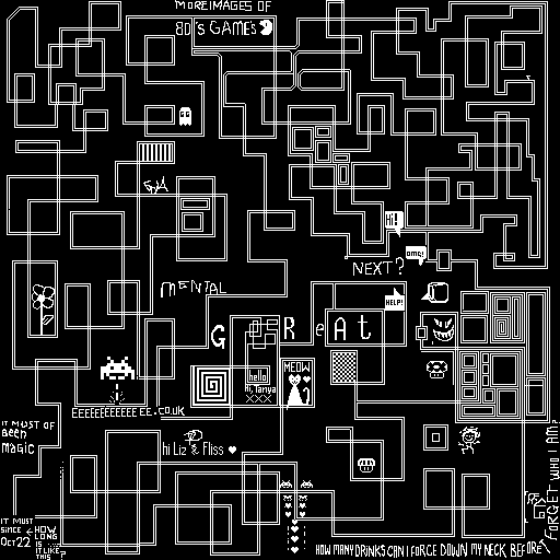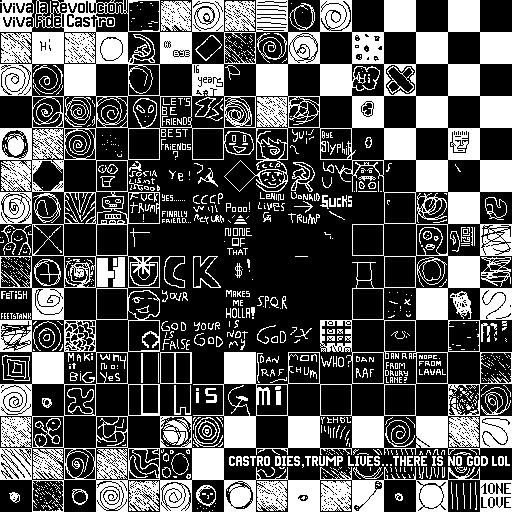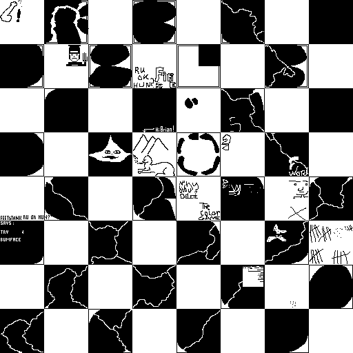 Notes: Most software plays these animated GIF files a bit slowly because they contain thousands of frames. The Linux program xanim plays them well. The whole (time-lapse) retrospective history of the work can be exhibited as a projection. [Help]