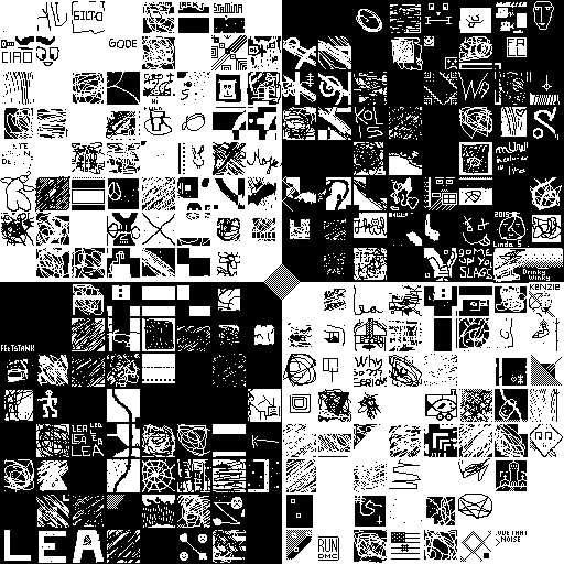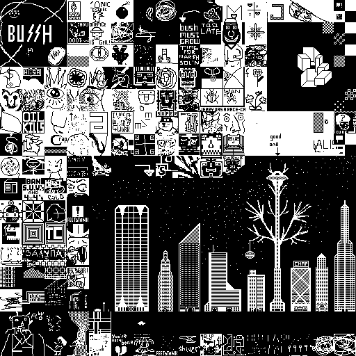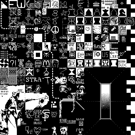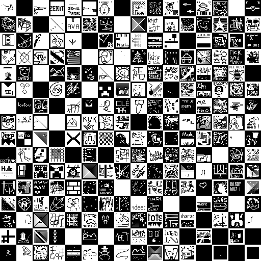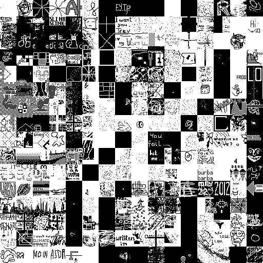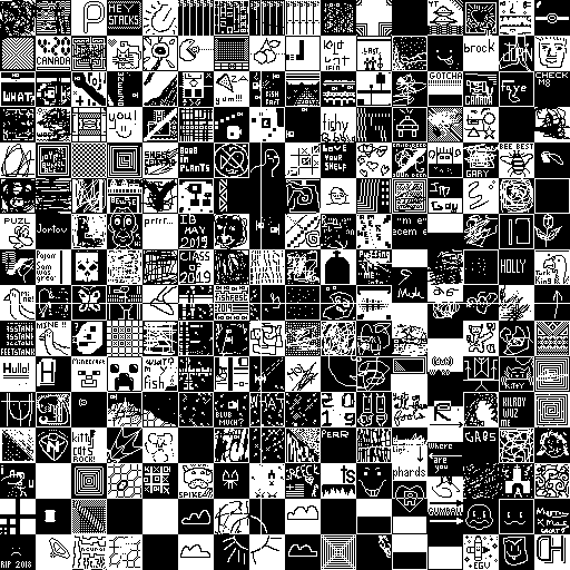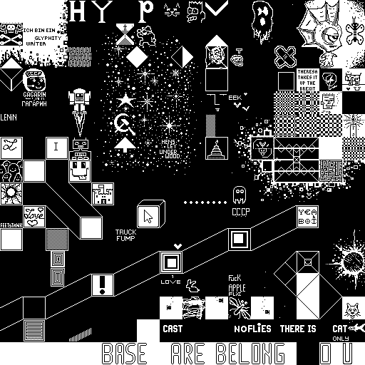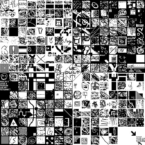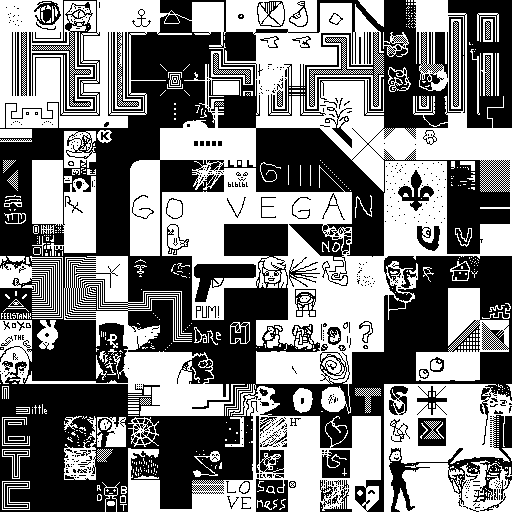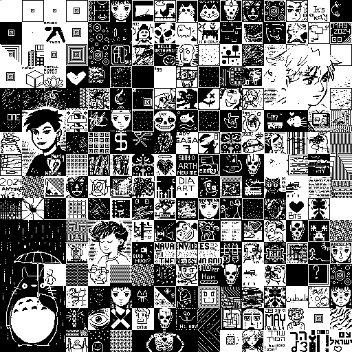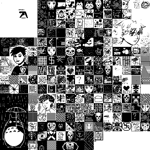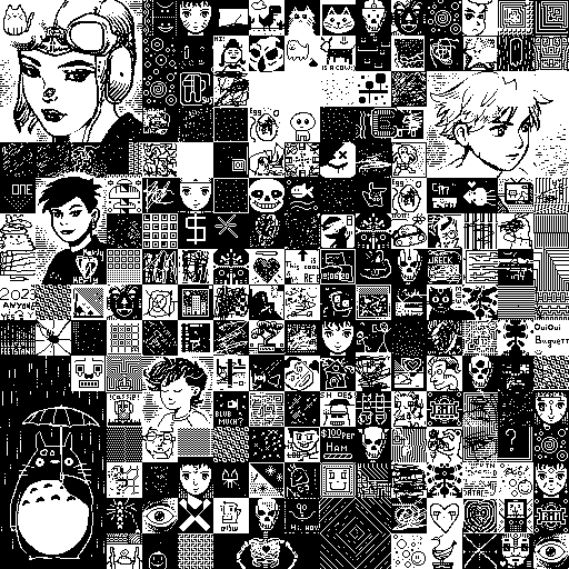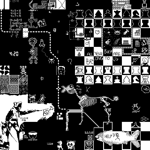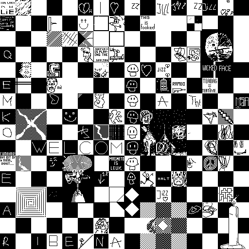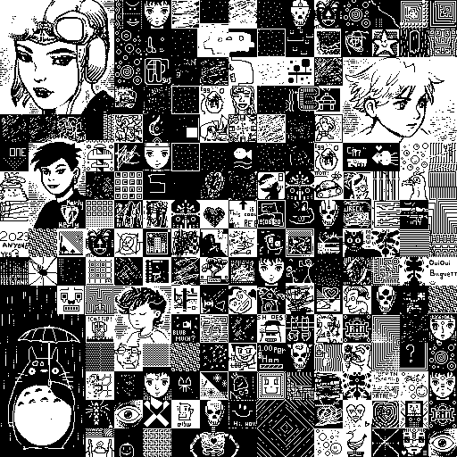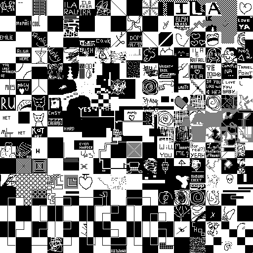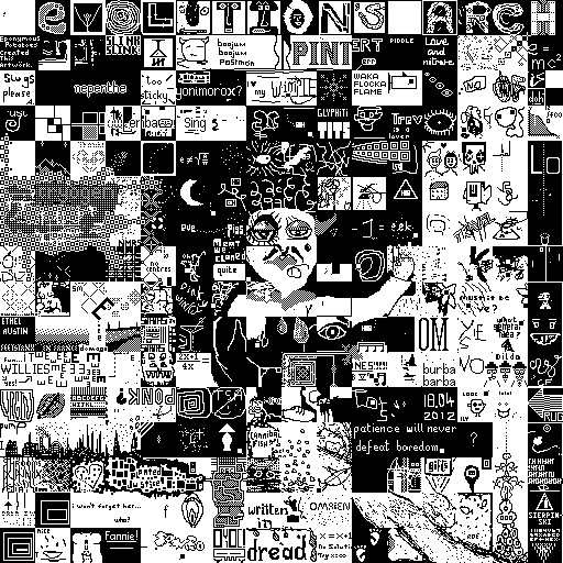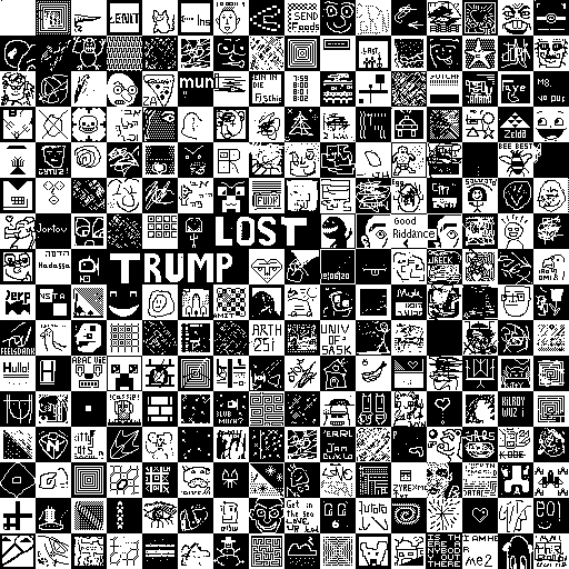 Notes: Most software plays these animated GIF files a bit slowly because they contain thousands of frames. The Linux program xanim plays them well. The whole (time-lapse) retrospective history of the work can be exhibited as a projection. [Help]