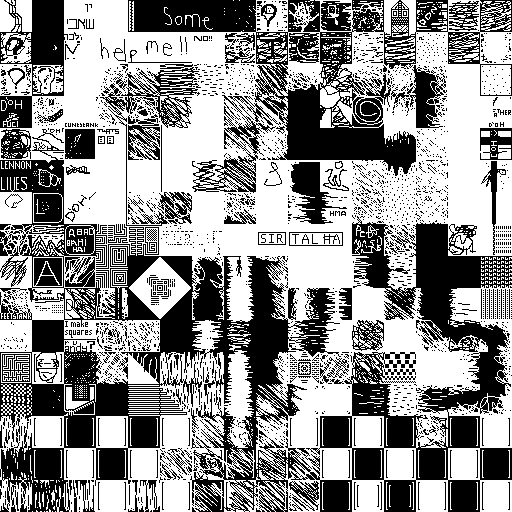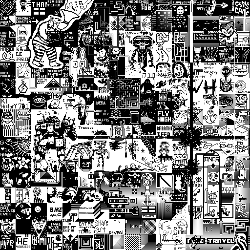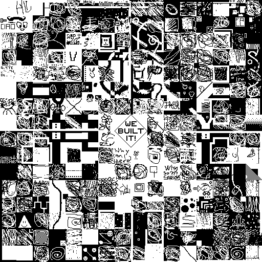 Notes: Most software plays these animated GIF files a bit slowly because they contain thousands of frames. The Linux program xanim plays them well. The whole (time-lapse) retrospective history of the work can be exhibited as a projection. [Help]